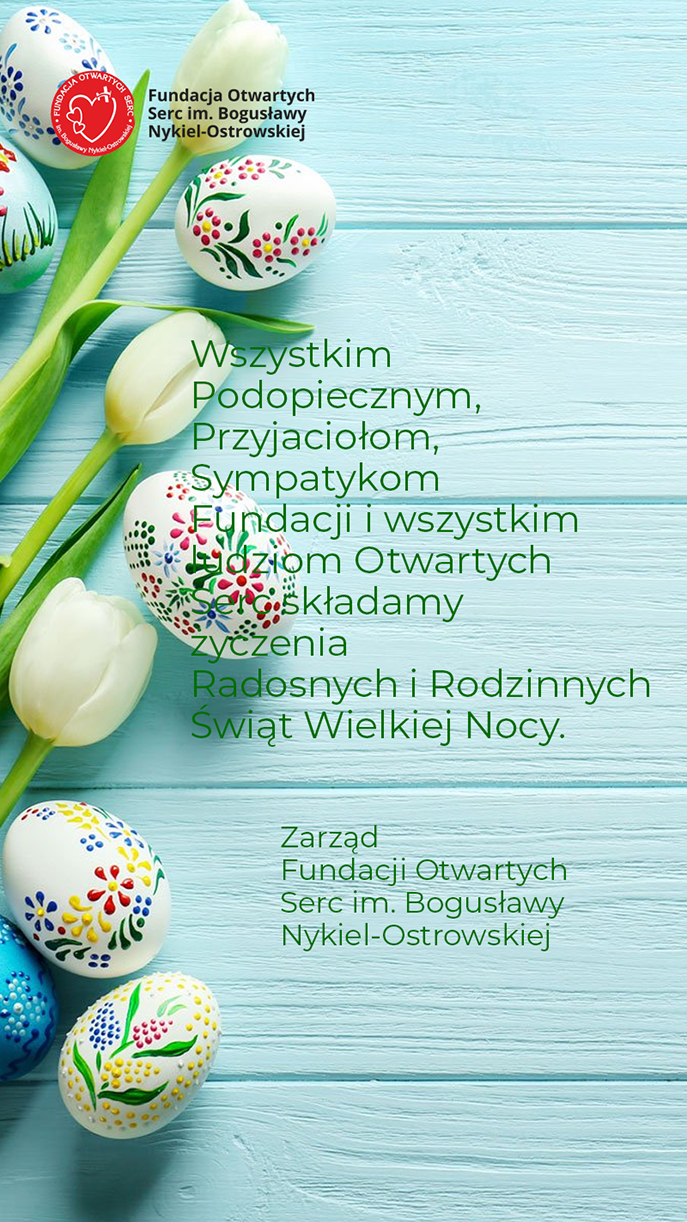 Wszystkim Podopiecznym, Przyjaciołom, Sympatykom Fundacji i wszystkim ludziom Otwartych Serc składamy życzenia Radosnych i Rodzinnych Świąt Wielkiej Nocy.
